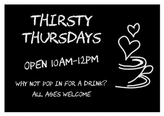 Thirsty Thursdays is a wonderful opportunity for the community to come together for a drink and some lovely goodies. Enjoy a hot buttered crumpet, a slice of malt loaf, a piece of cake or simply a biscuit.